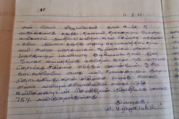மதிப்பீட்டு அடிப்படையில், உங்கள் உடல்நிலை மற்றும் நோய்கள் பற்றிய தகவல்களுடன் இணைந்த தனிப்பட்ட சிகிச்சை திட்டத்தை உருவாக்குகிறோம். இதில் யோகாசனங்கள், மூச்சுப்பயிற்சி மற்றும் இயற்கை முறைகள் அடங்கும்.